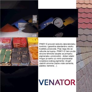 Kako se pri radu s pigmentima pojavljuju brojni problemi: određivanje potrebne količine pigmenta, apliciranje premaza, miješanje pigmenta u beton, priprema tekućeg pigmenta, trošenje dijelova strojeva i sl., PINKY-S je počeo proizvoditi specifičnu opremu za rad s pigmentima: |